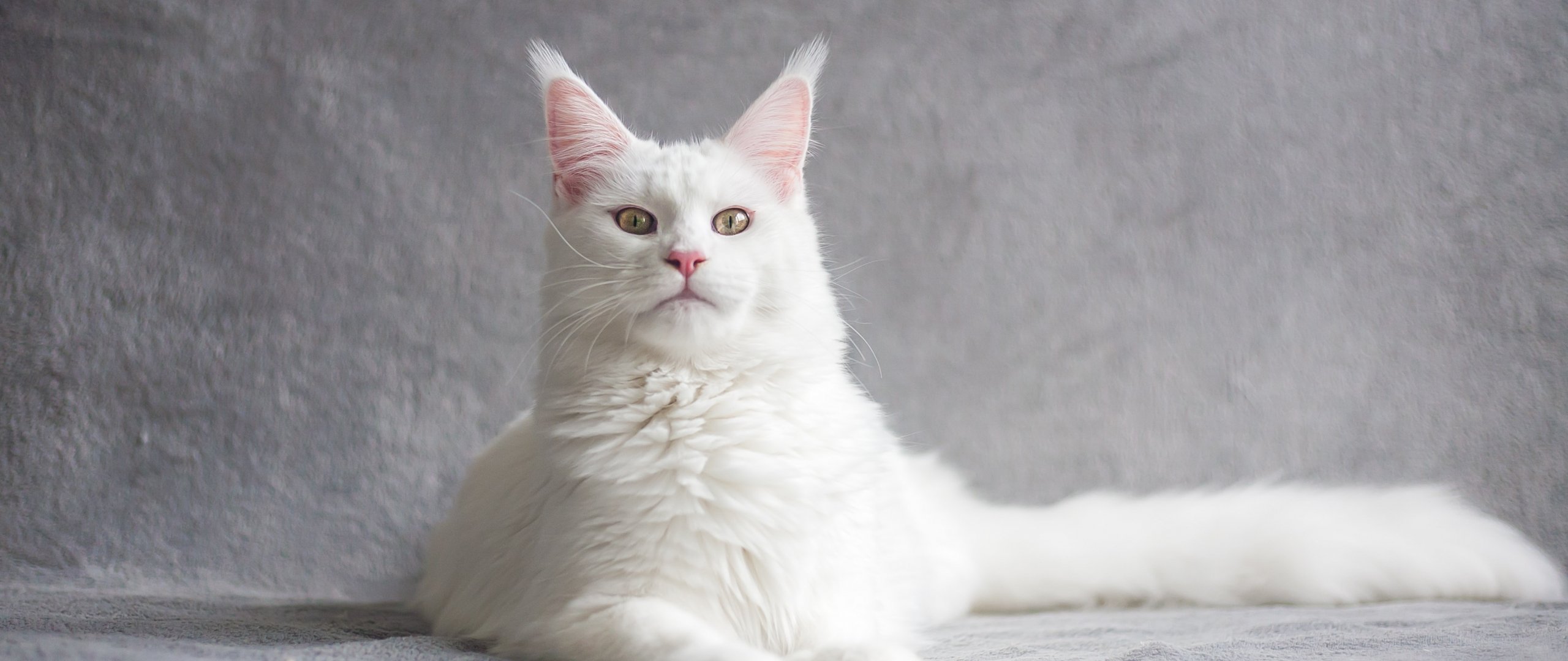 Wallpaper: maine coon, cat, white - 2560x1080