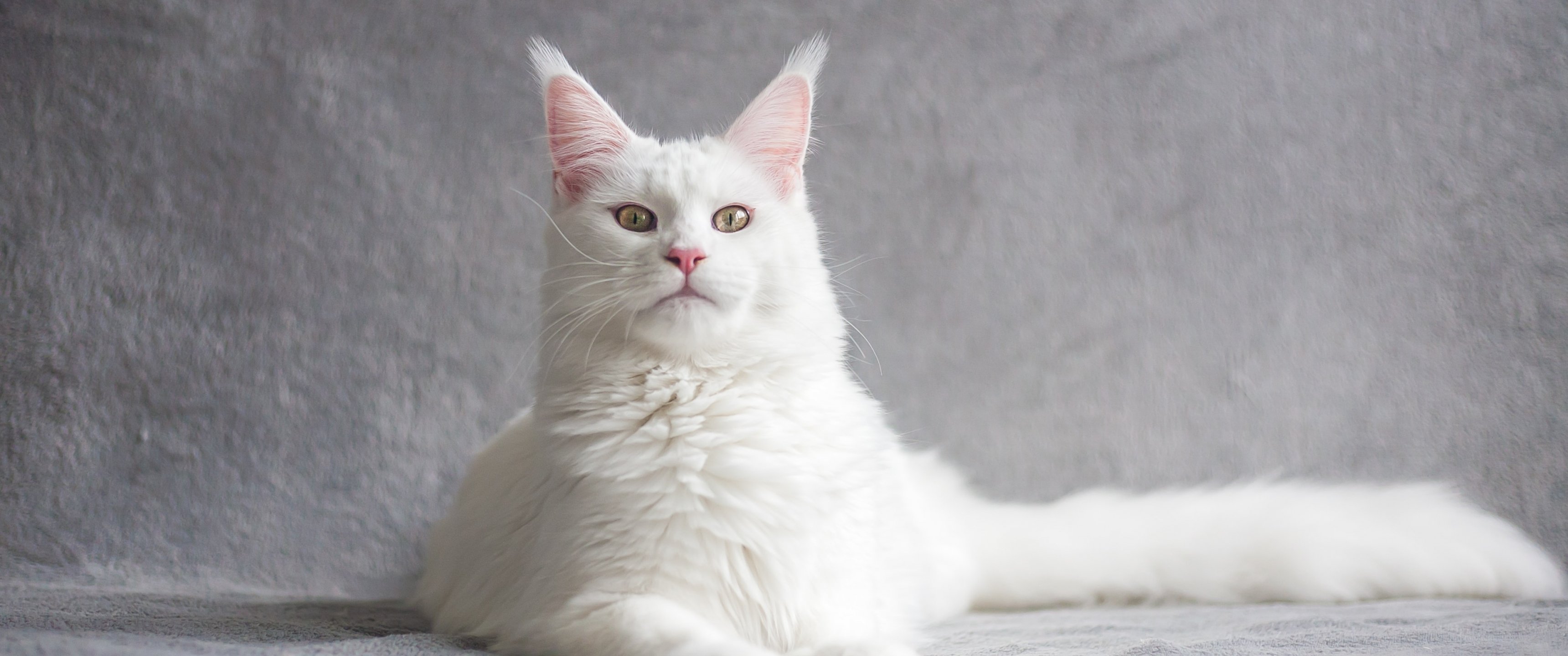 Wallpaper: maine coon, cat, white - 3440x1440