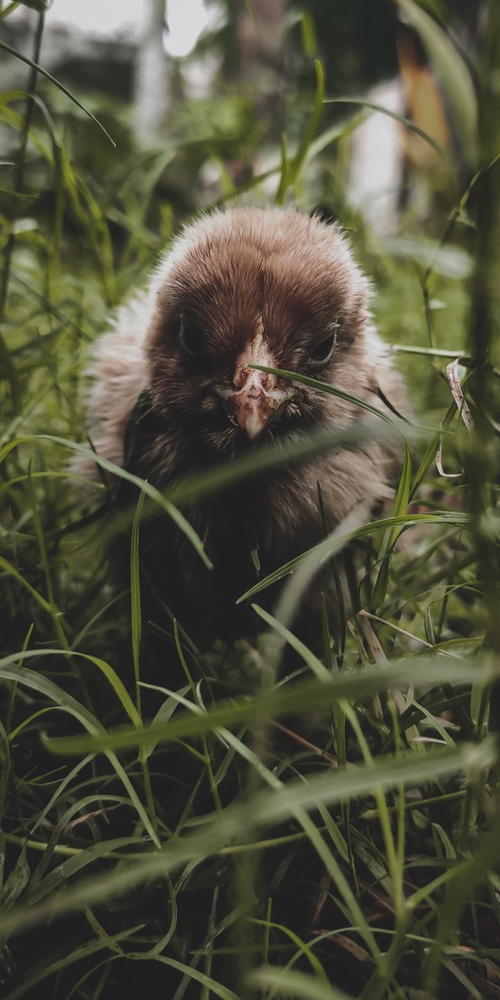 Wallpaper: chick, kid, grass - 720x1440