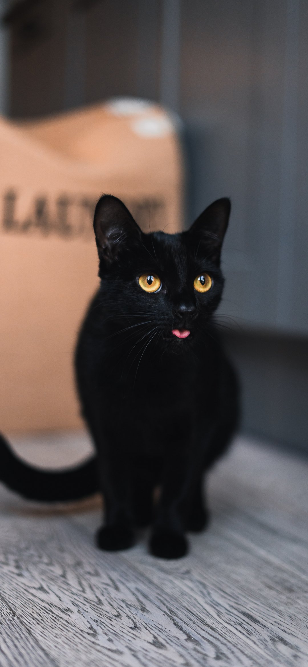 Wallpaper: black cat, yellow eyes - 1080x2340