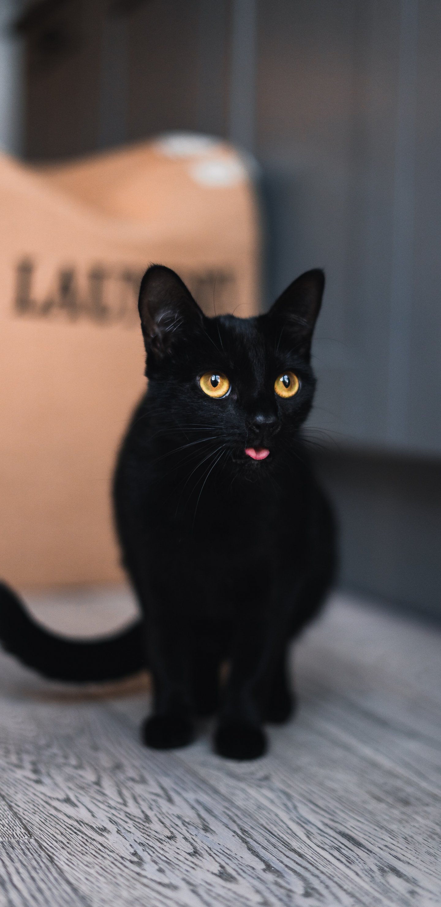 Wallpaper: black cat, yellow eyes - 1440x2960