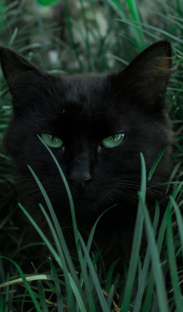 Wallpaper: black cat, green eyes - 600x1024