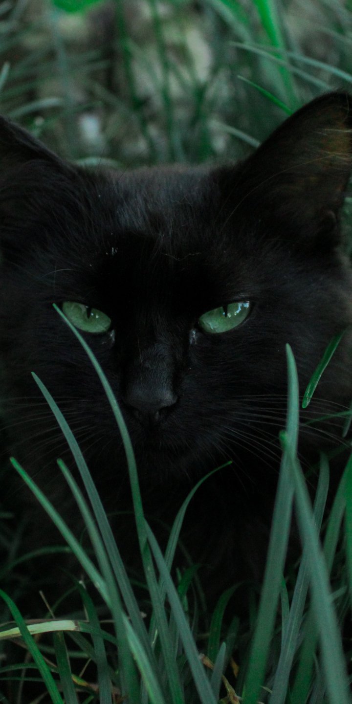 Wallpaper: black cat, green eyes - 720x1440