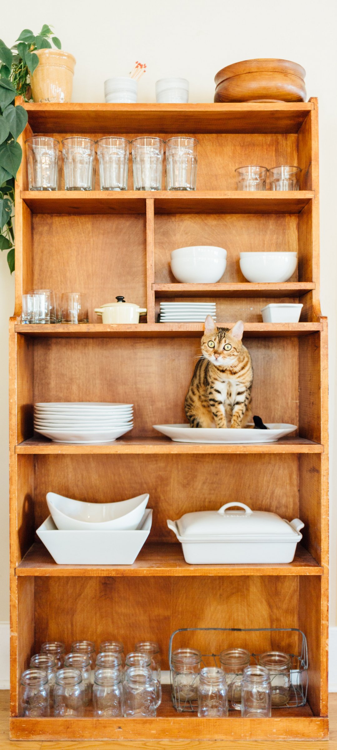 Wallpaper: closet, cat, cookware - 1080x2400