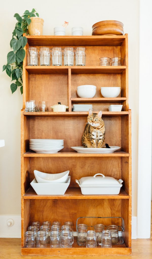 Wallpaper: closet, cat, cookware - 600x1024