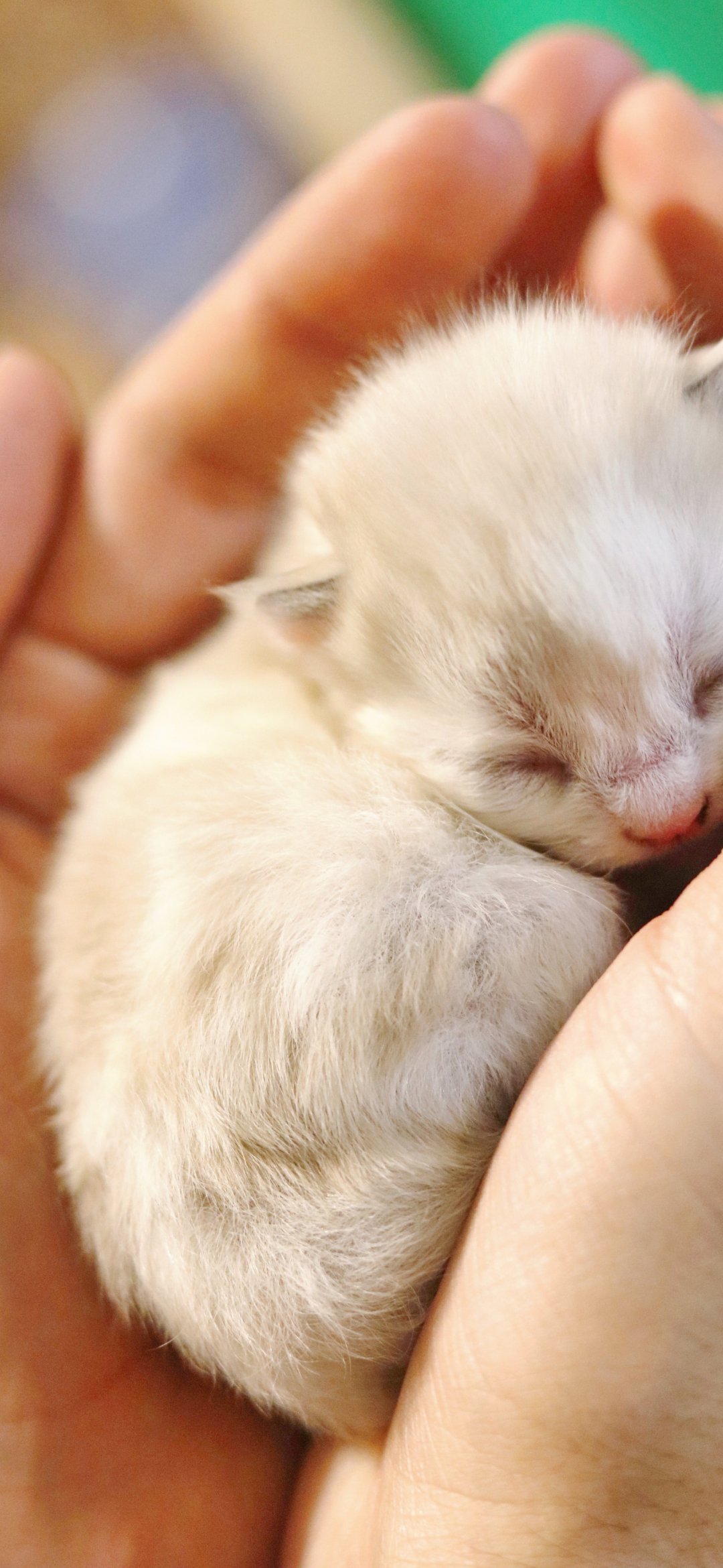 Wallpaper: kitten, kid, hands - 1080x2340