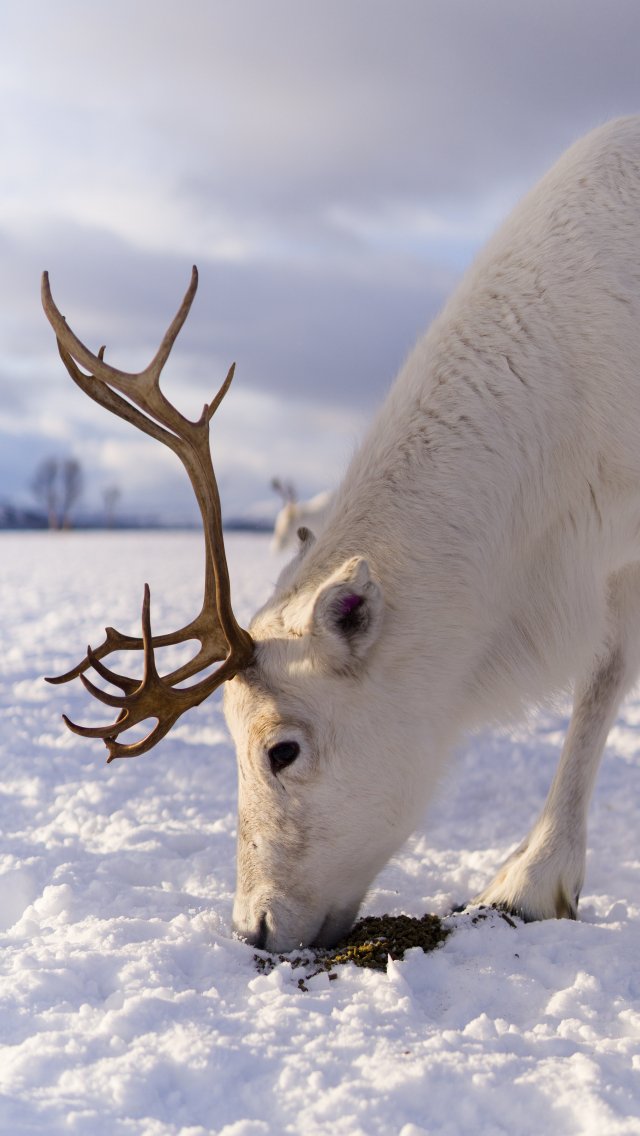 Wallpaper: reindeer, snow, winter - 640x1136
