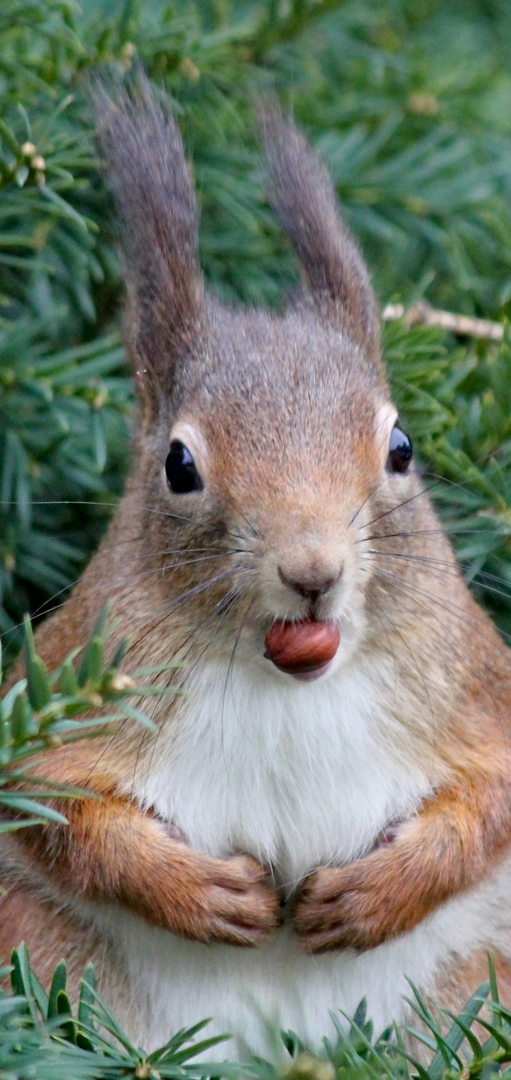 Wallpaper: squirrel, look, snack - 720x1520