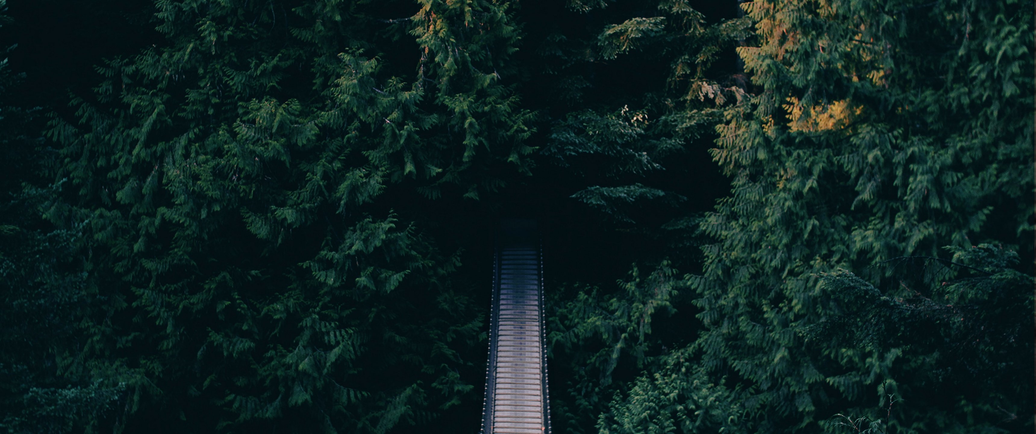Wallpaper: forest, trees, green, bridge - 3440x1440
