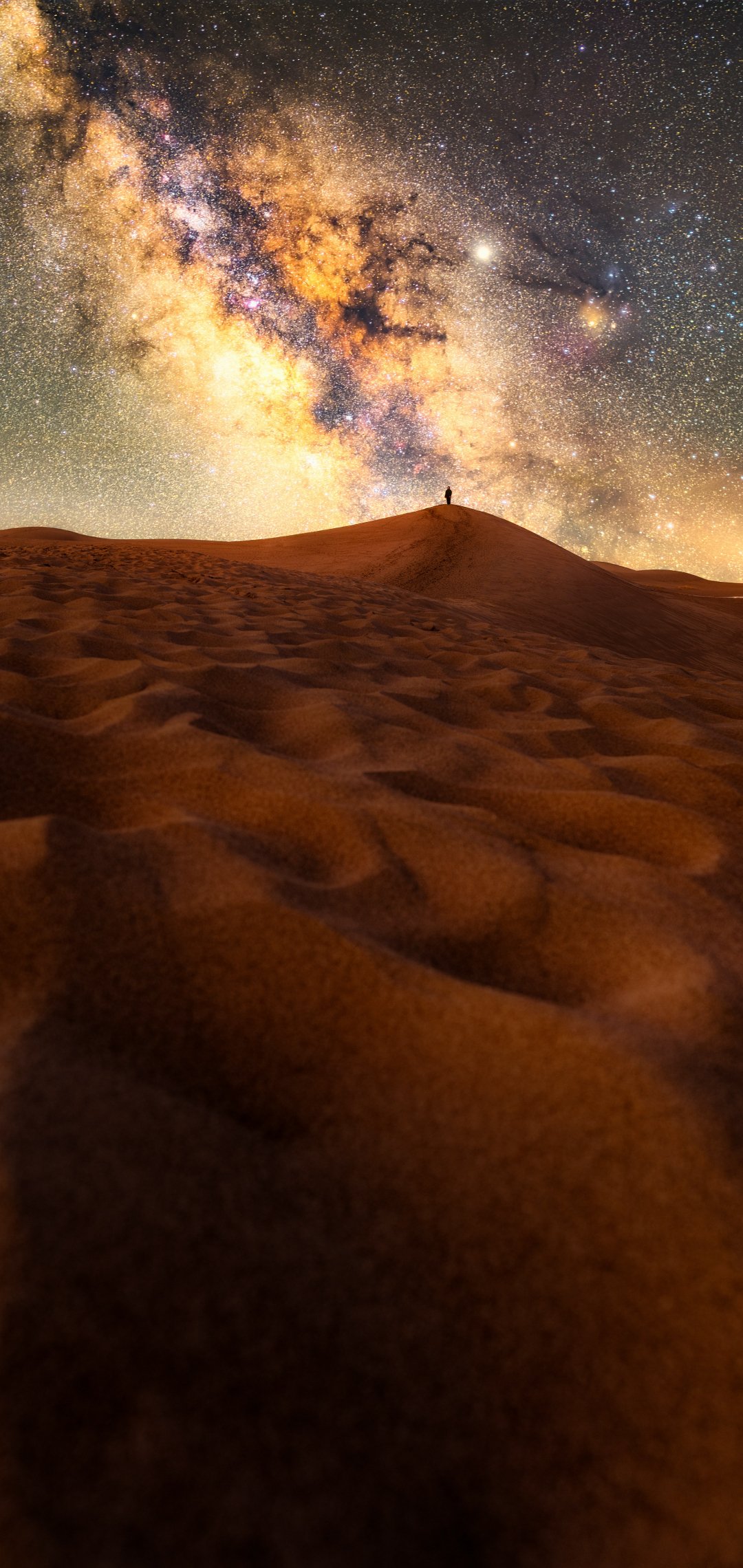 Wallpaper: desert, milky way, night - 1080x2280