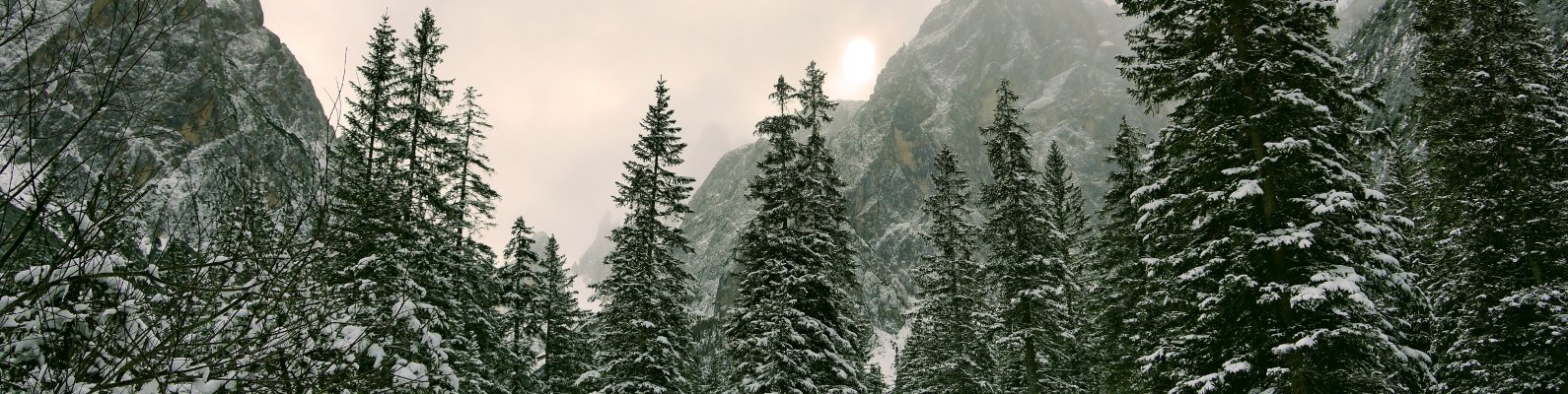 Wallpaper: coniferous forest, mountains, conifers - 1590x400
