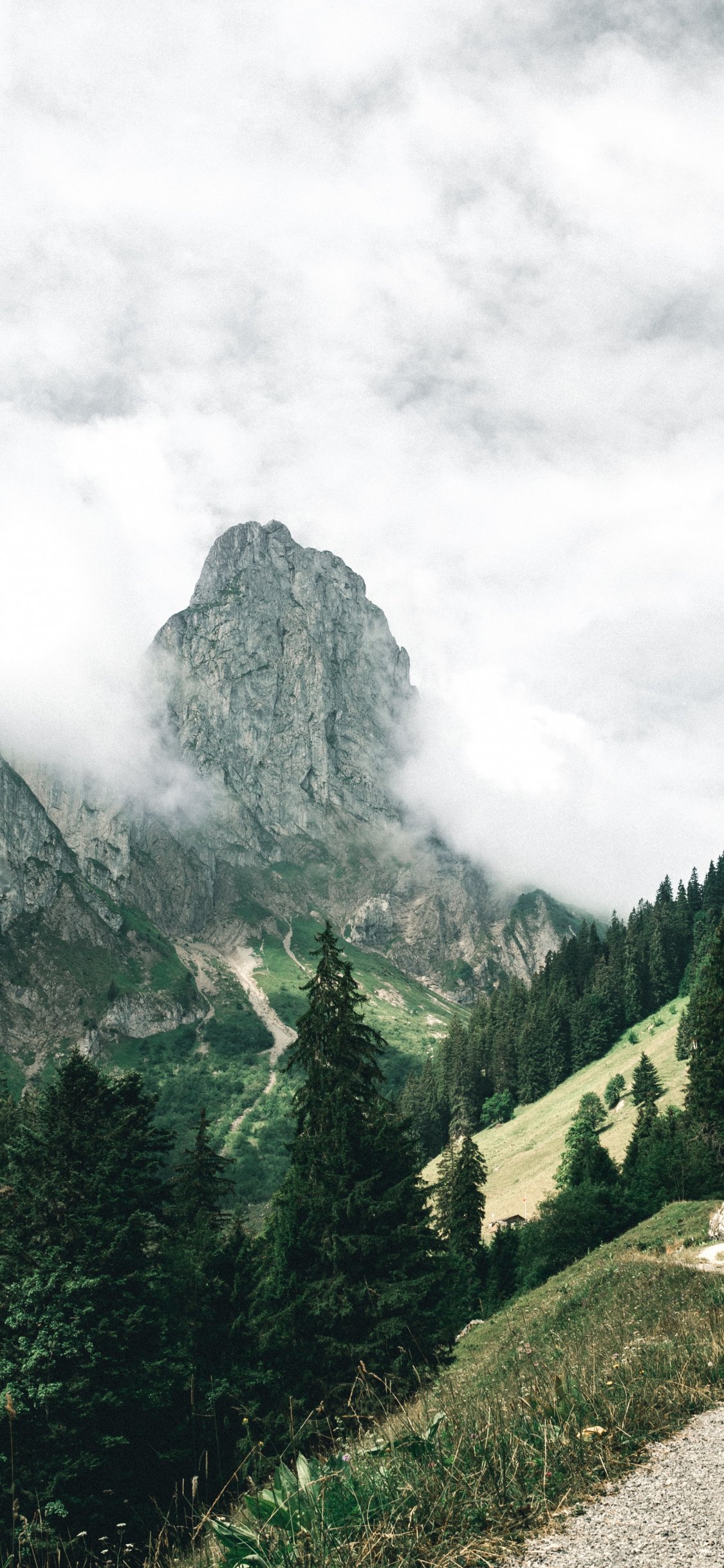 Wallpaper: mountains, forest, green, clouds - 1125x2436