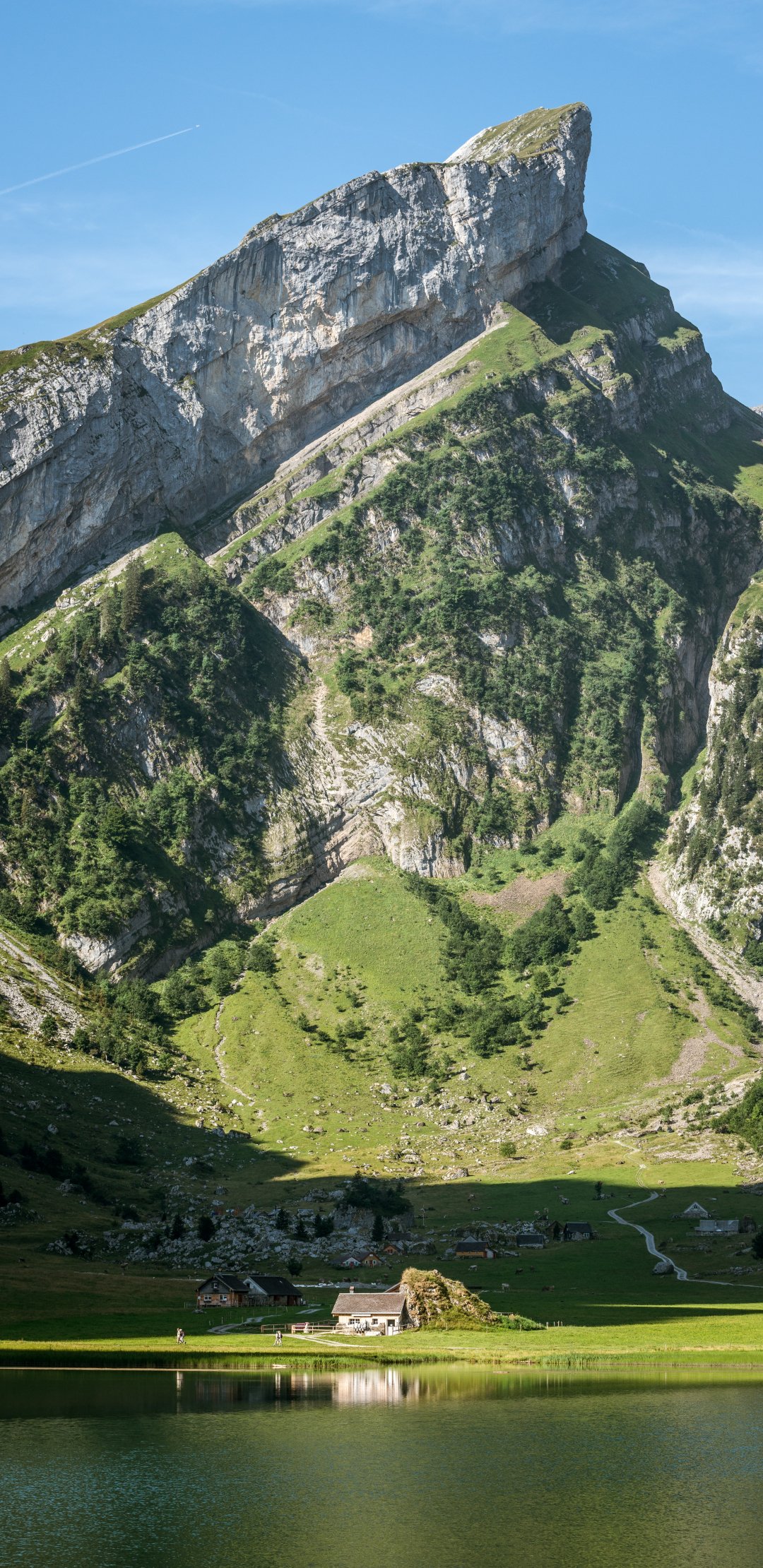 Wallpaper: mountains, lake, lake house - 1080x2220