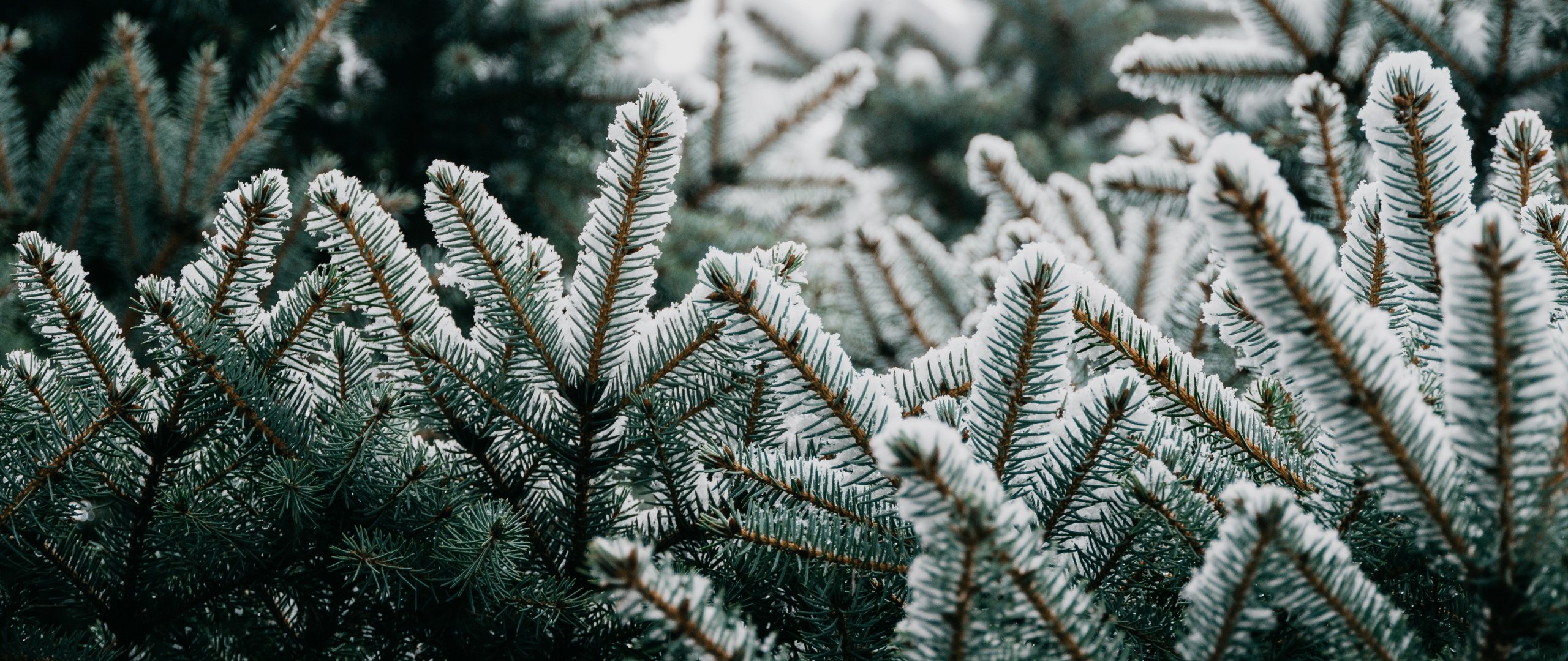 Wallpaper: spruce, branches, snow - 2560x1080