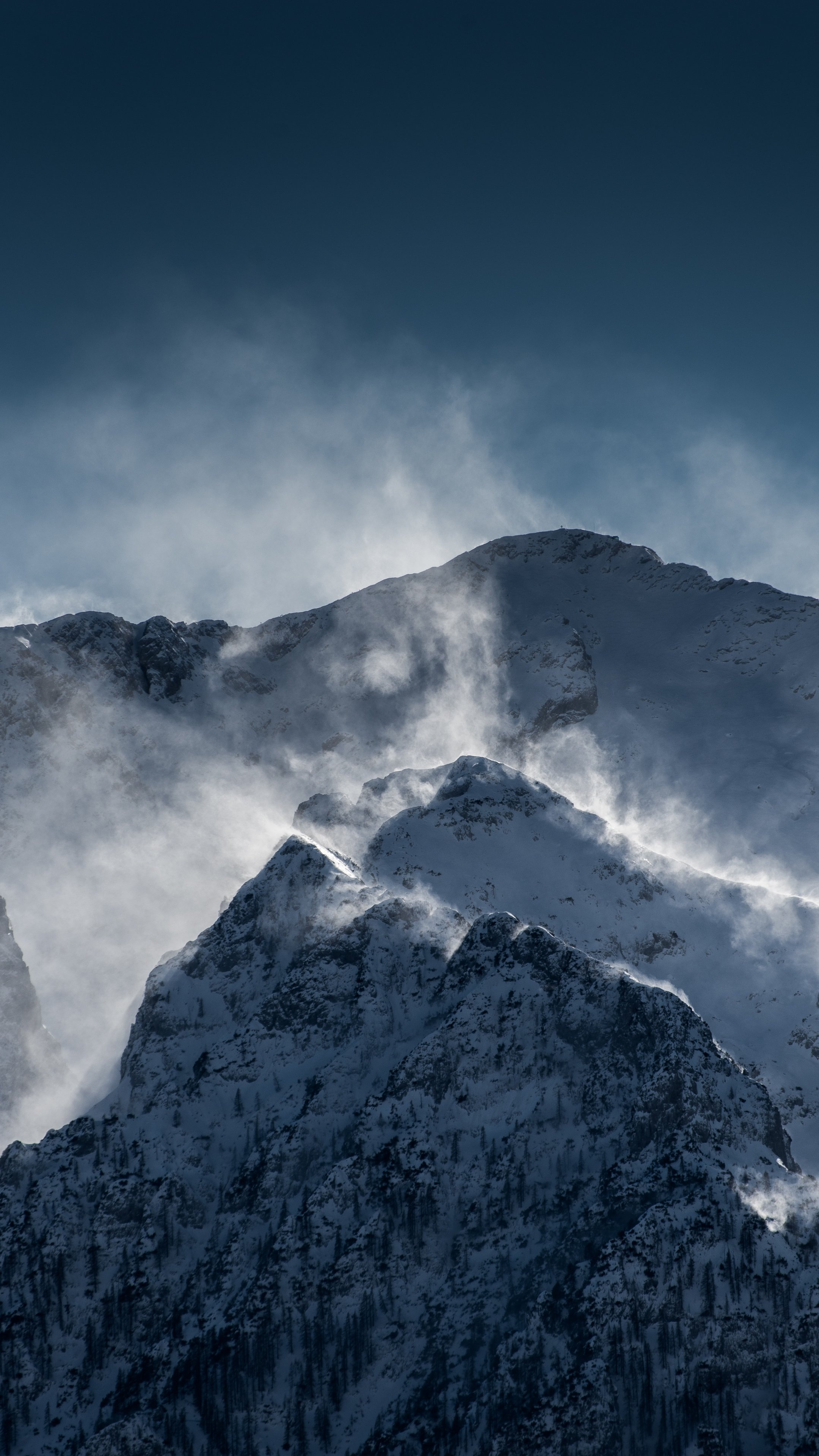 Wallpaper: mountains, snow, wind - 2160x3840