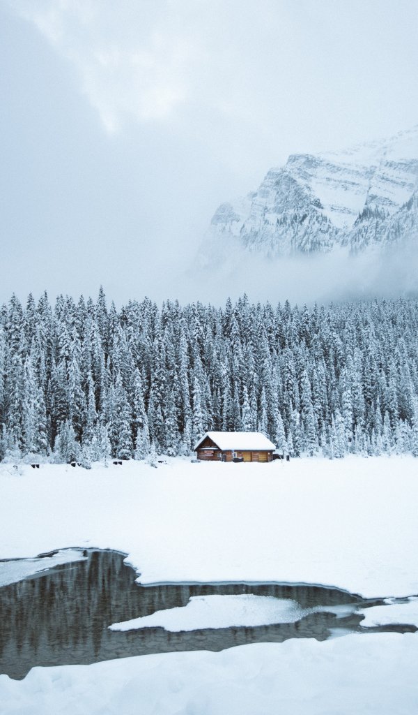 Wallpaper: mountains, winter, house, forest - 600x1024