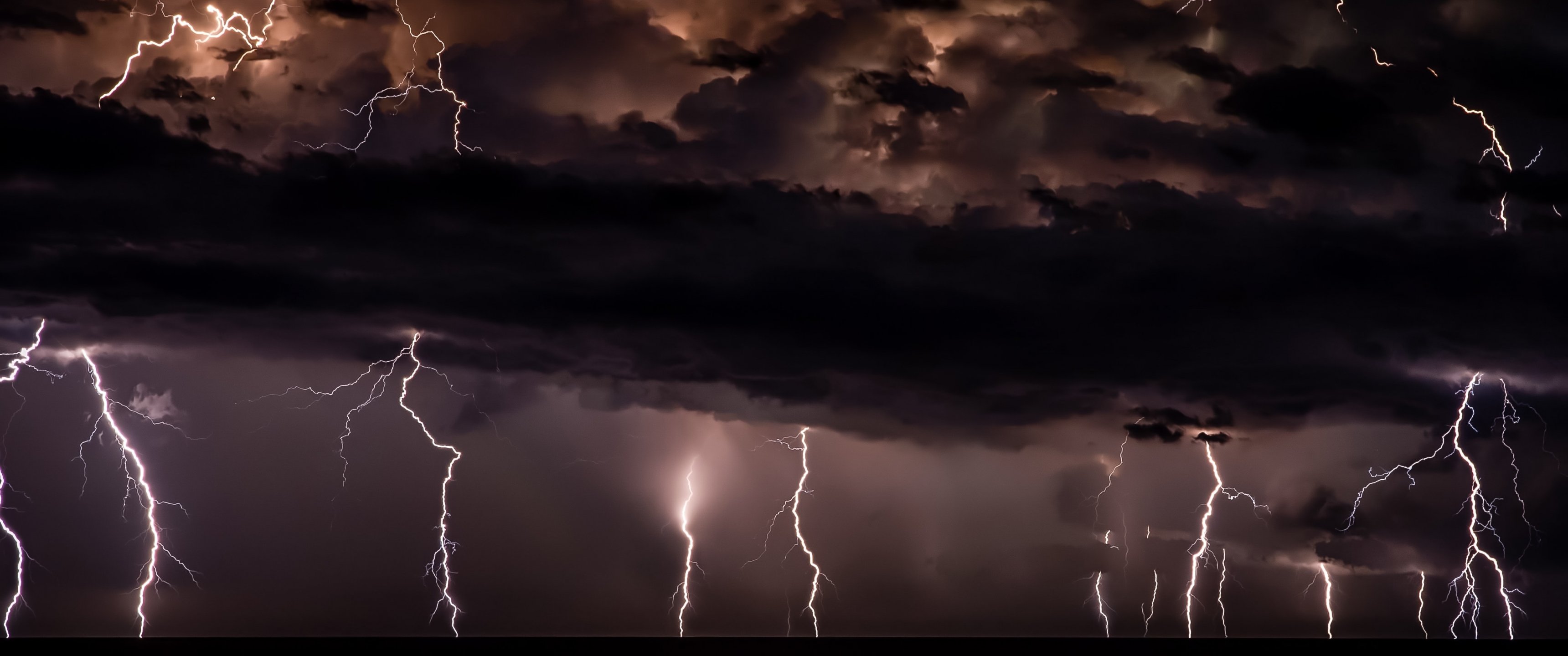 Wallpaper: lightning, thunderstorm, night - 3440x1440