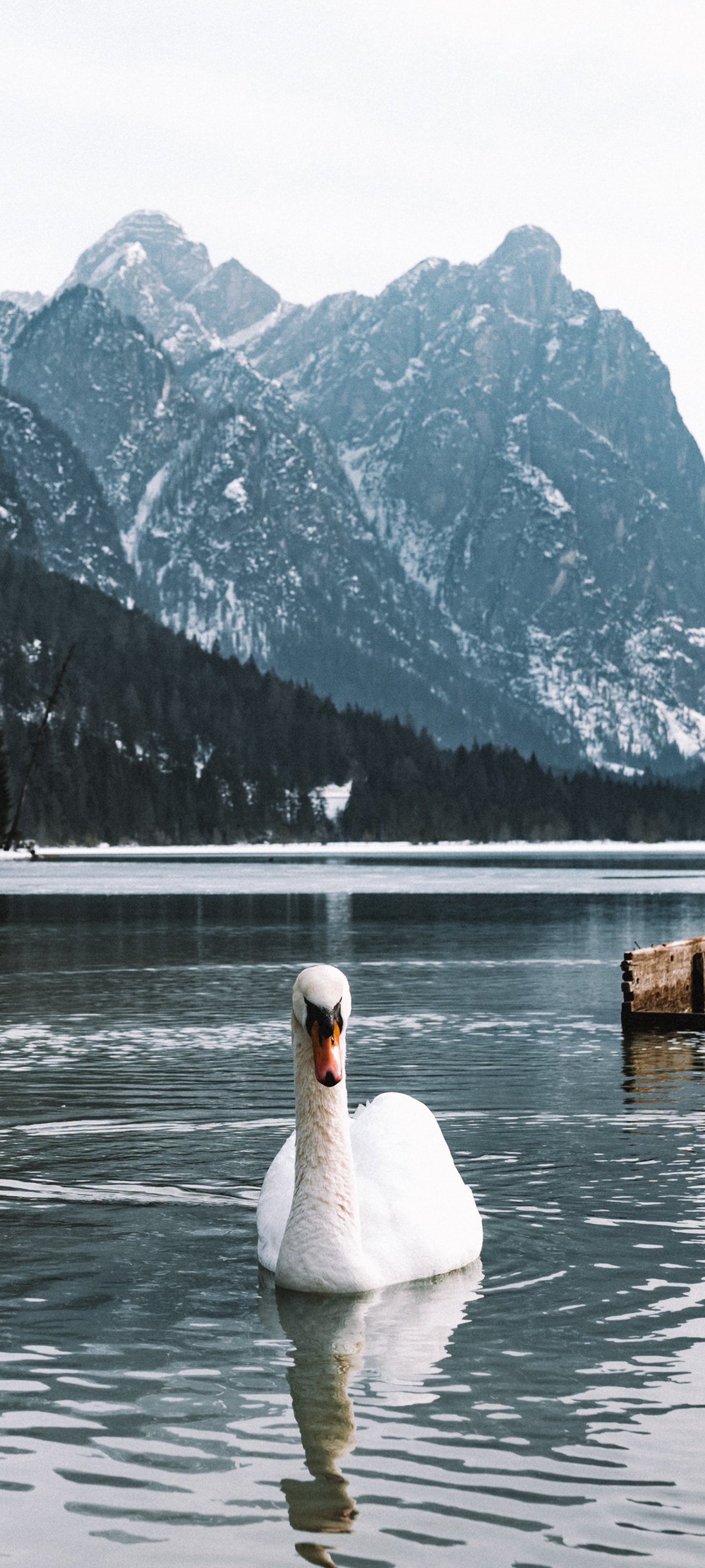 Wallpaper: swan, lake, mountains - 1440x3200