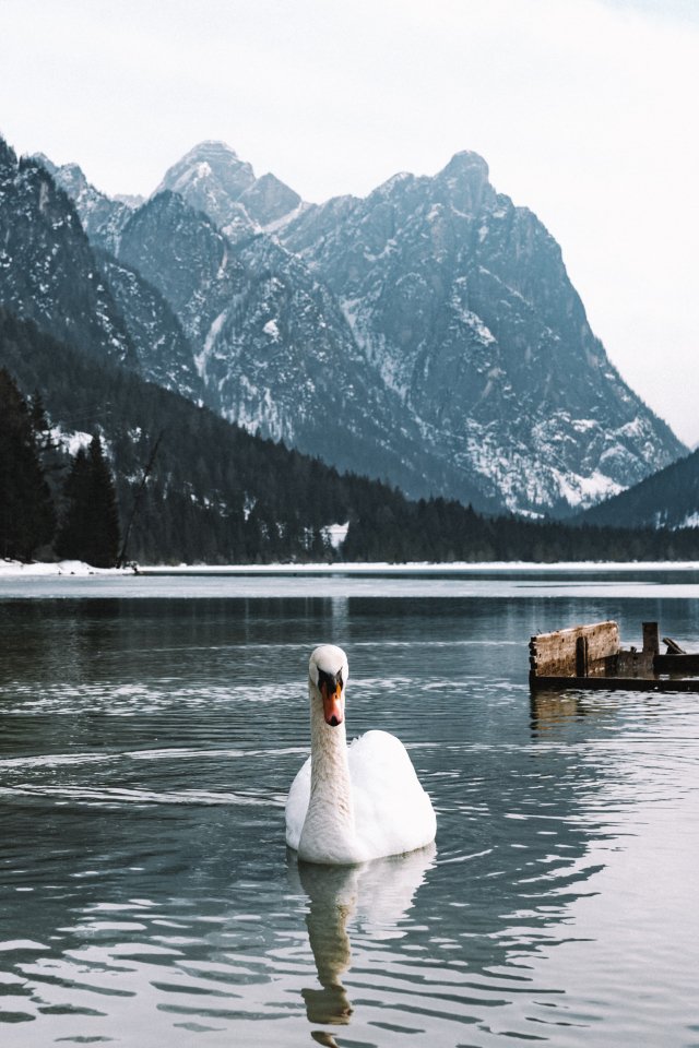 Wallpaper: swan, lake, mountains - 640x960