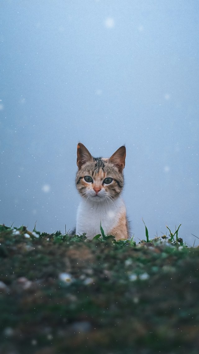 Wallpaper: cat, snow, grass - 640x1136