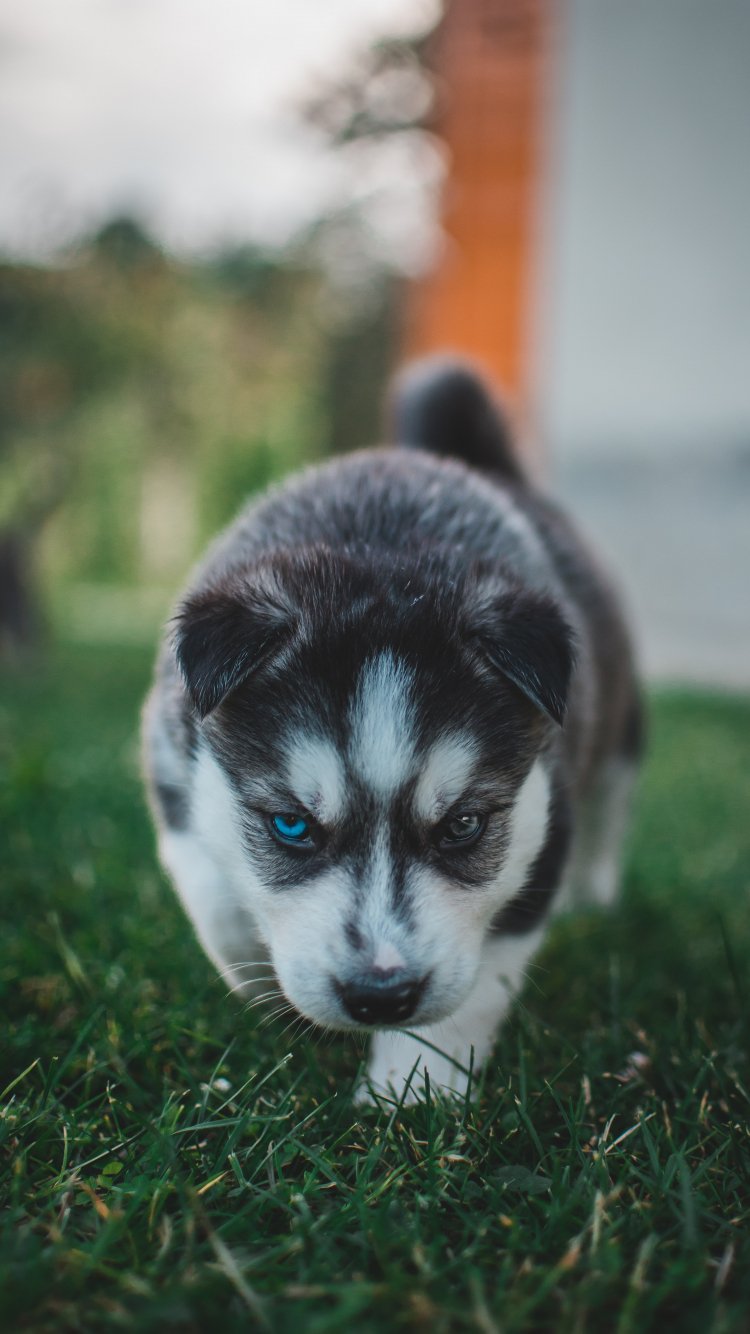 Wallpaper: puppy, huskies, grass - 750x1334