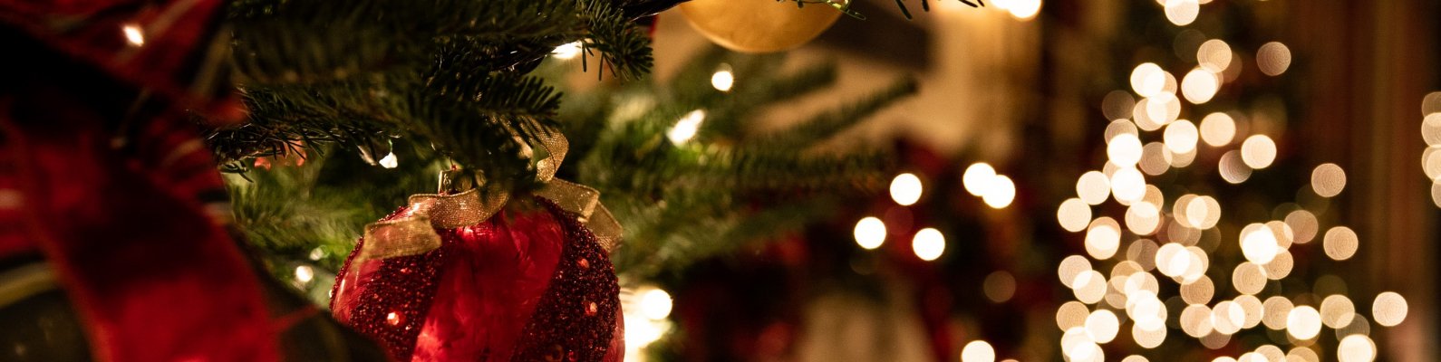 Wallpaper: christmas, spruce, decoration - 1590x400