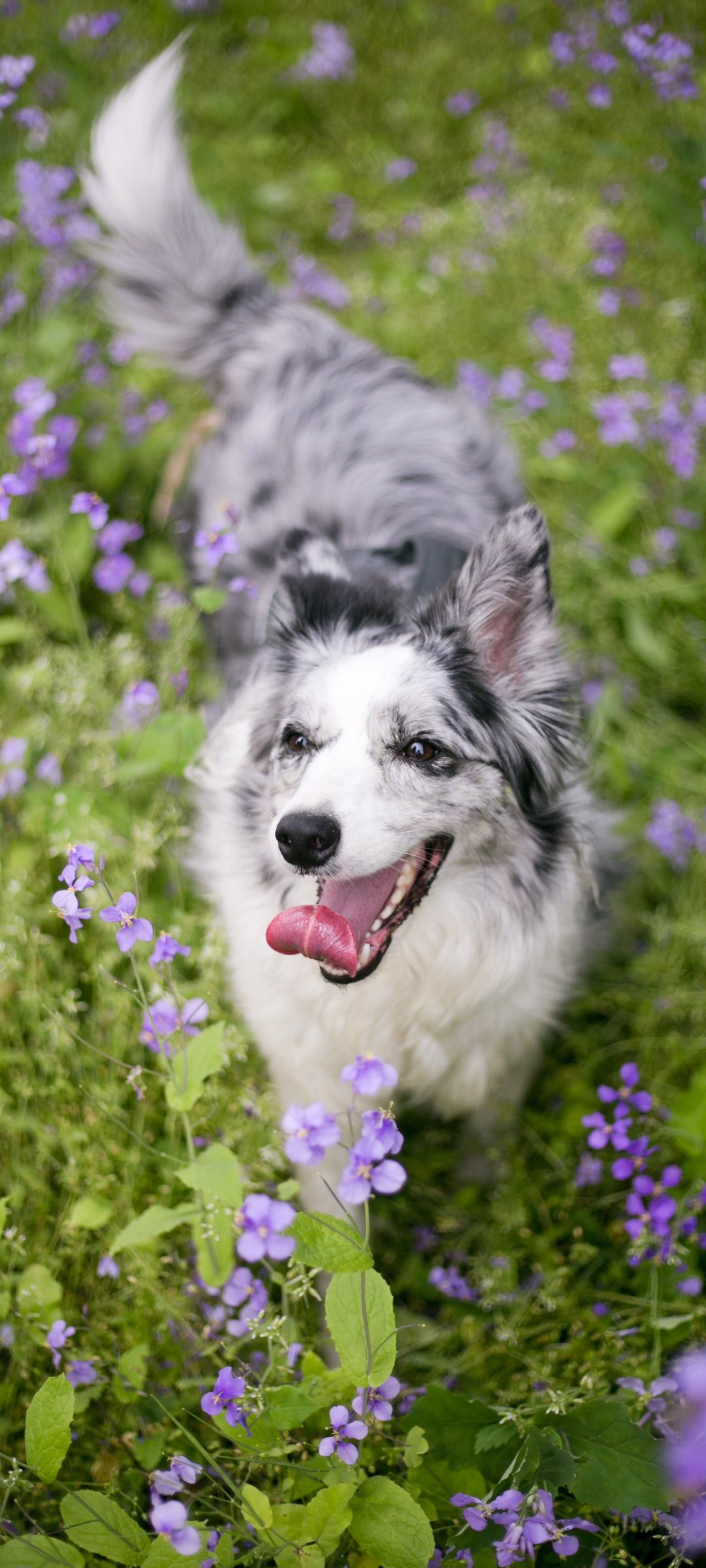Wallpaper: dog, pole, grass - 1080x2400