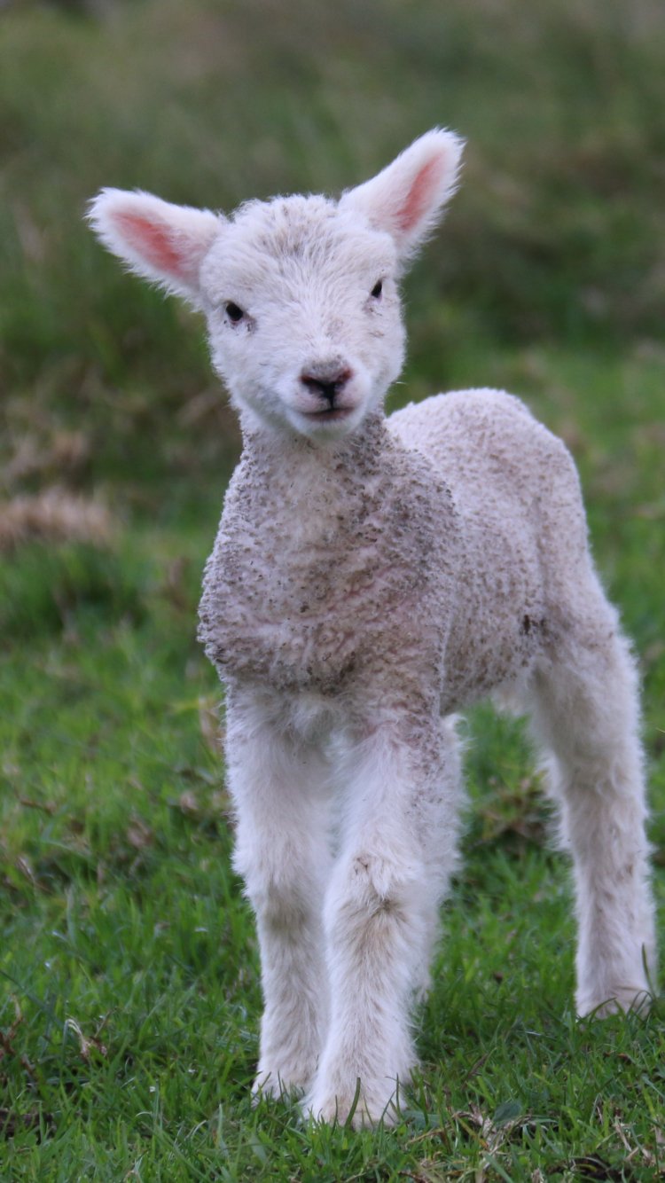 Wallpaper: lamb, kid, grass - 750x1334