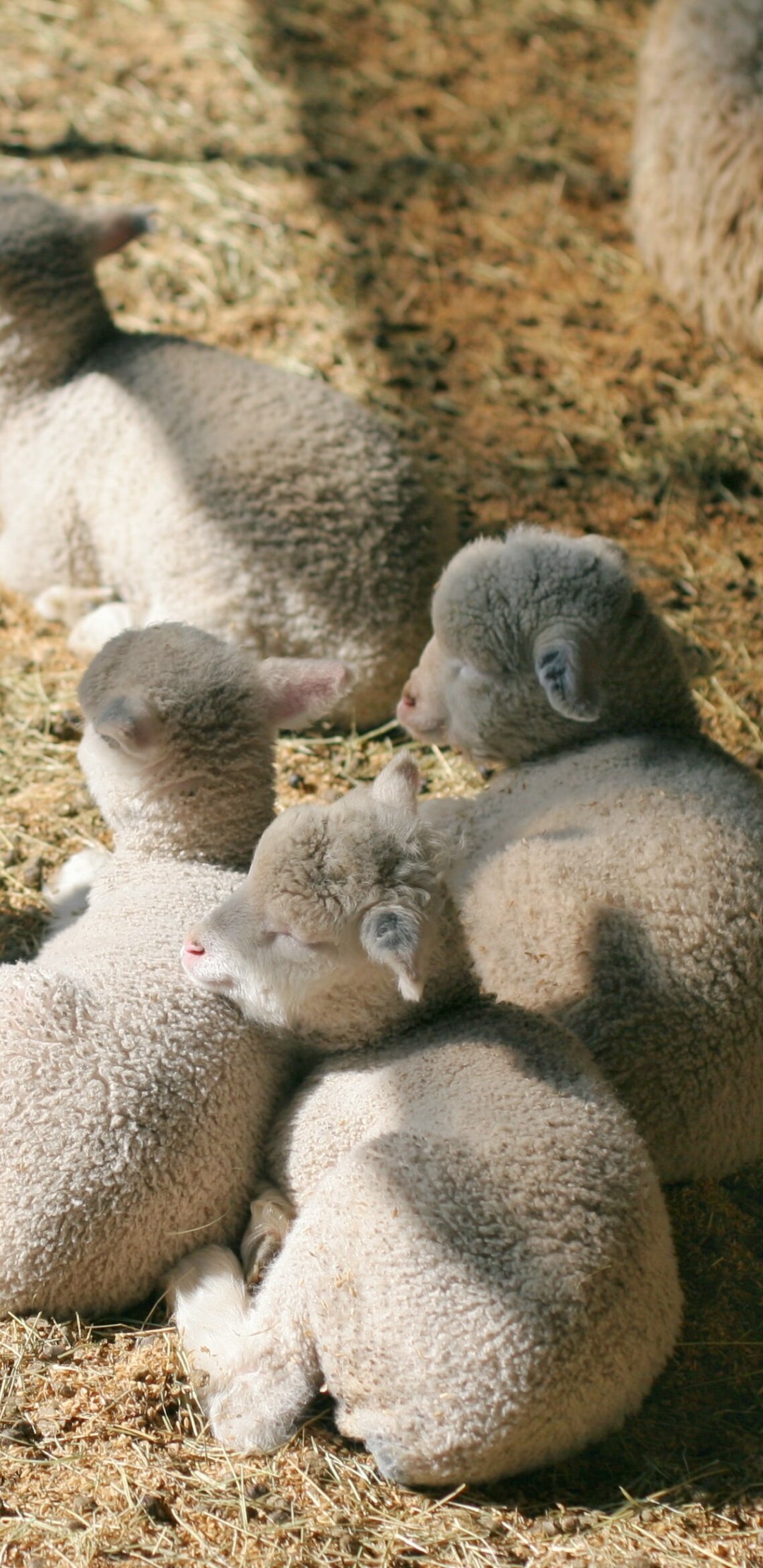 Wallpaper: lamb, kid, hay - 1080x2220