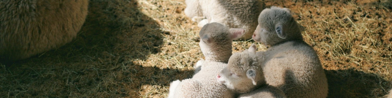 Wallpaper: lamb, kid, hay - 1590x400