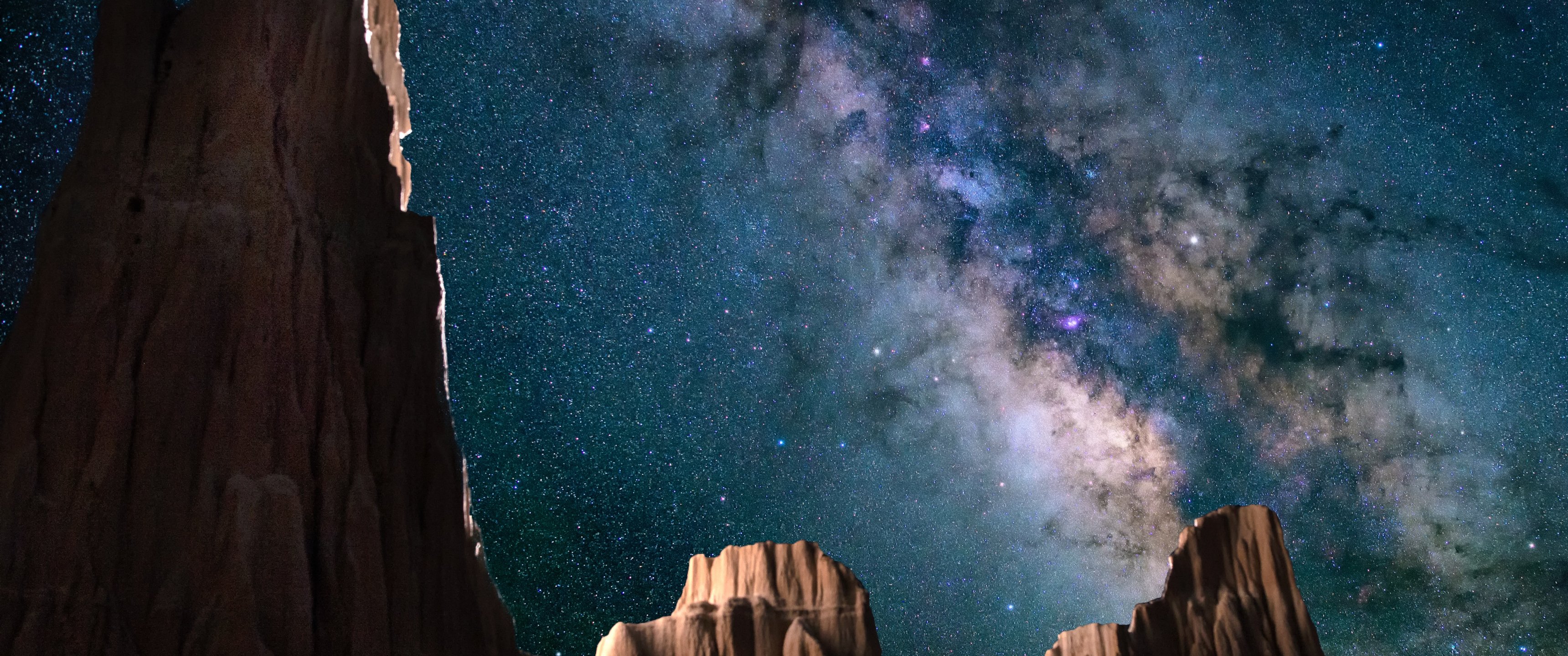 Wallpaper: milky way, mountains, night - 3440x1440