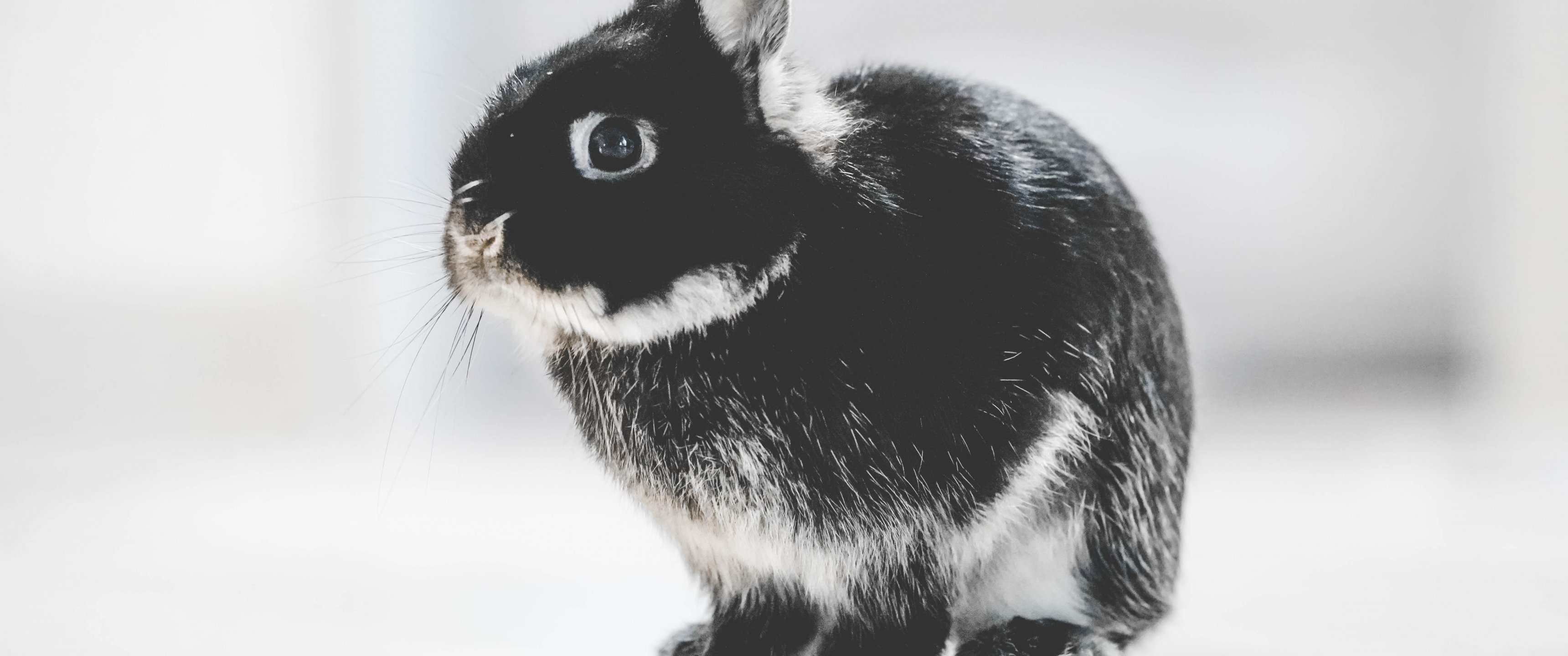 rabbit, white background Wallpaper 3440x1440