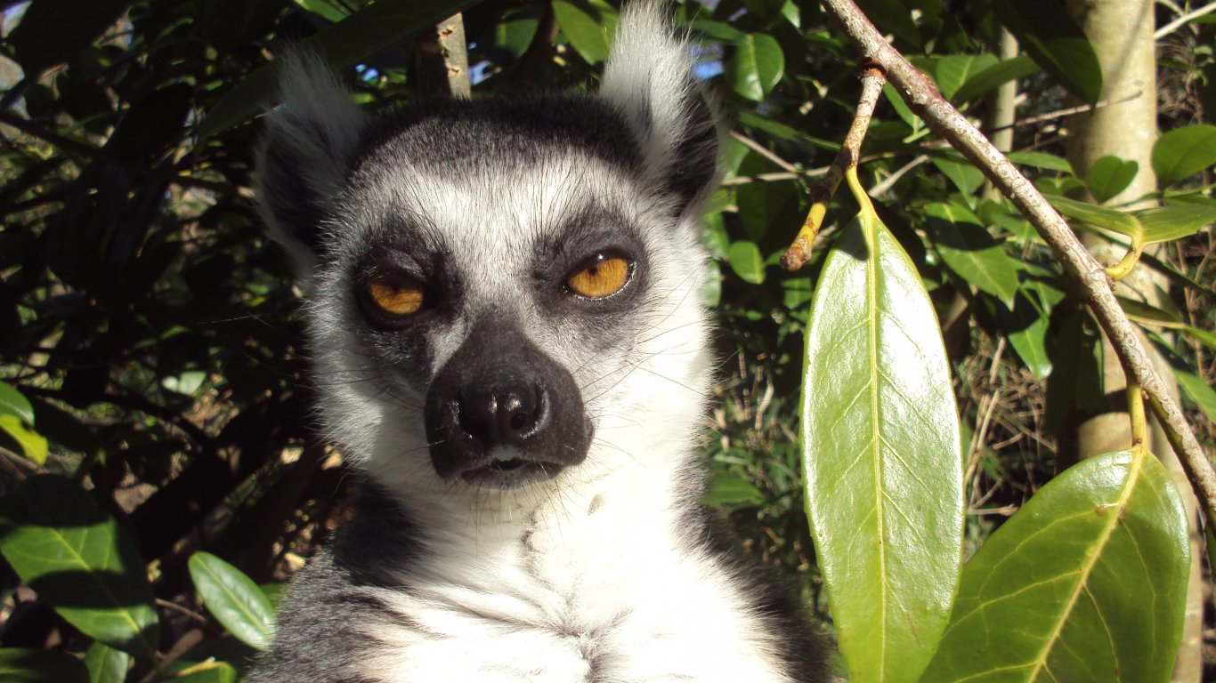 Wallpaper: lemur, brown eyes, look - 1366x768