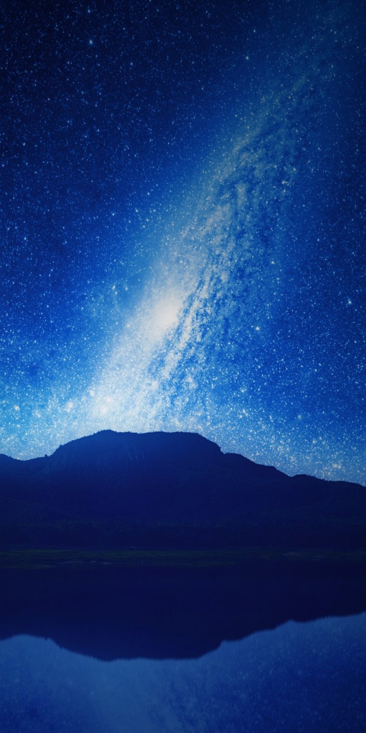 Wallpaper: night, lake, mountains, universe - 720x1440