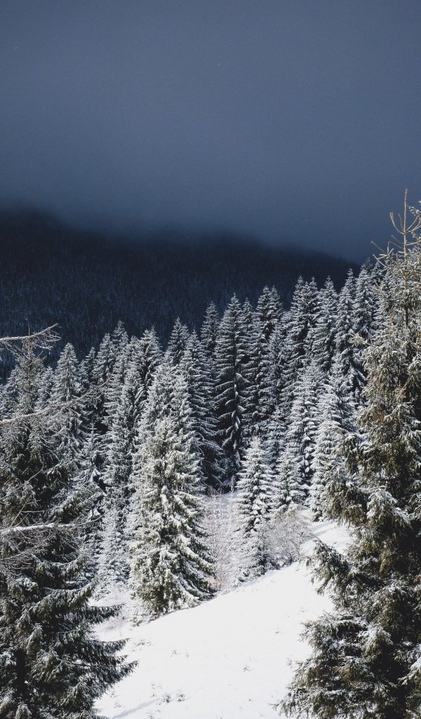 Wallpaper: winter forest, coniferous forest - 600x1024