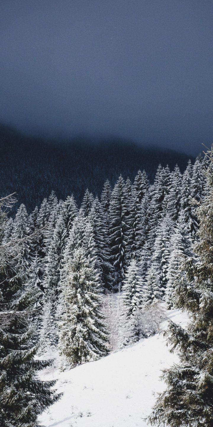 Wallpaper: winter forest, coniferous forest - 720x1440