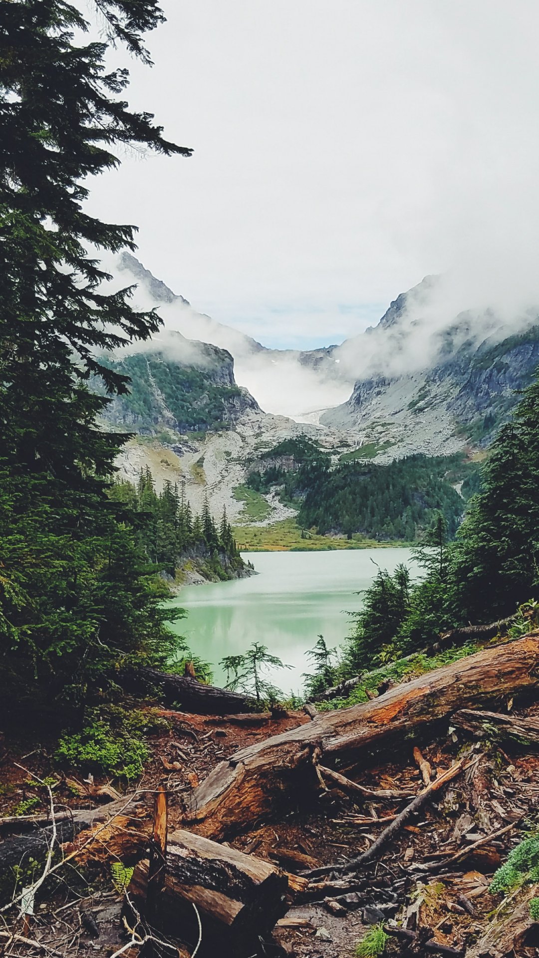 Wallpaper: mountains, forest, lake, clouds - 1080x1920