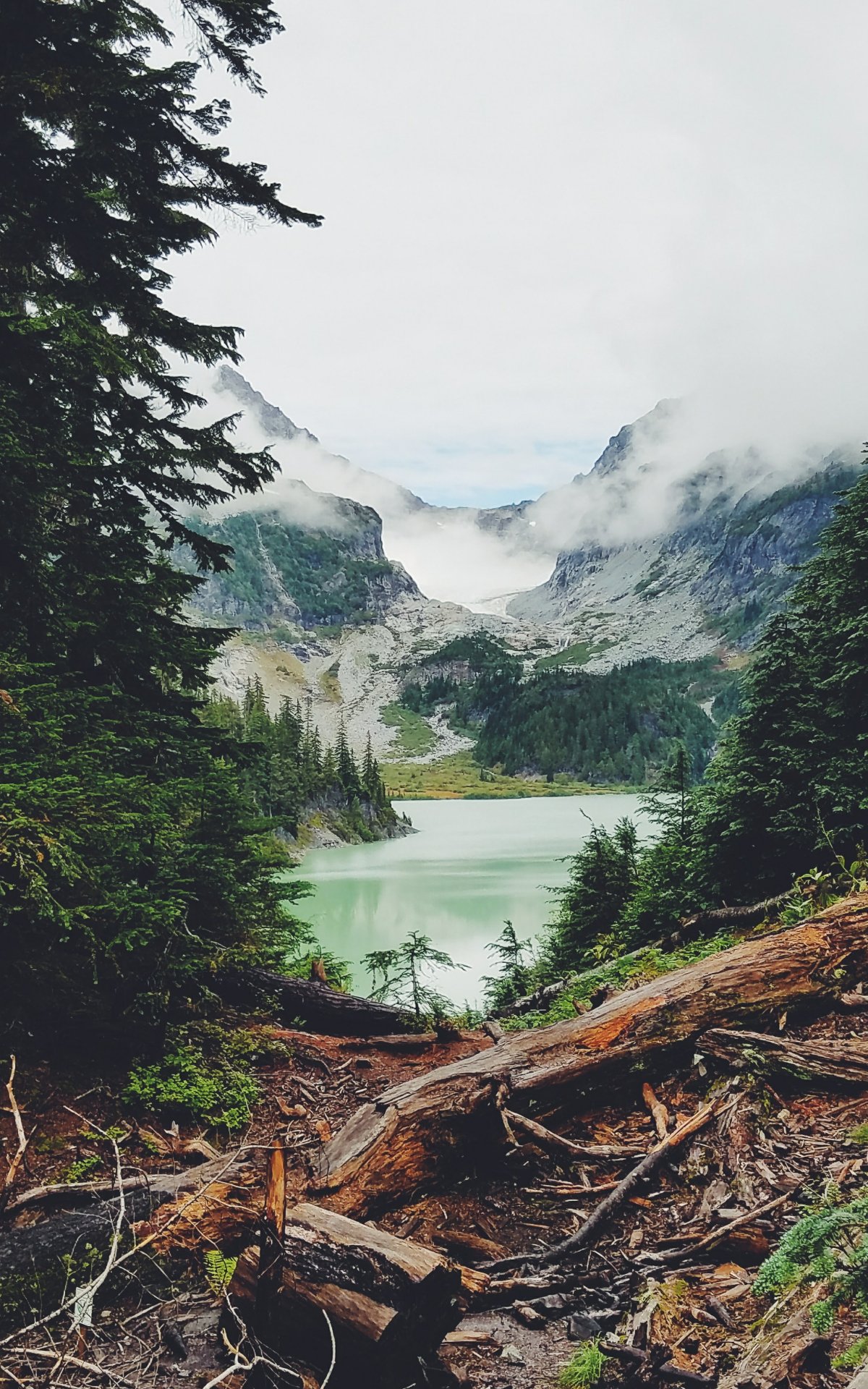 Wallpaper: mountains, forest, lake, clouds - 1200x1920