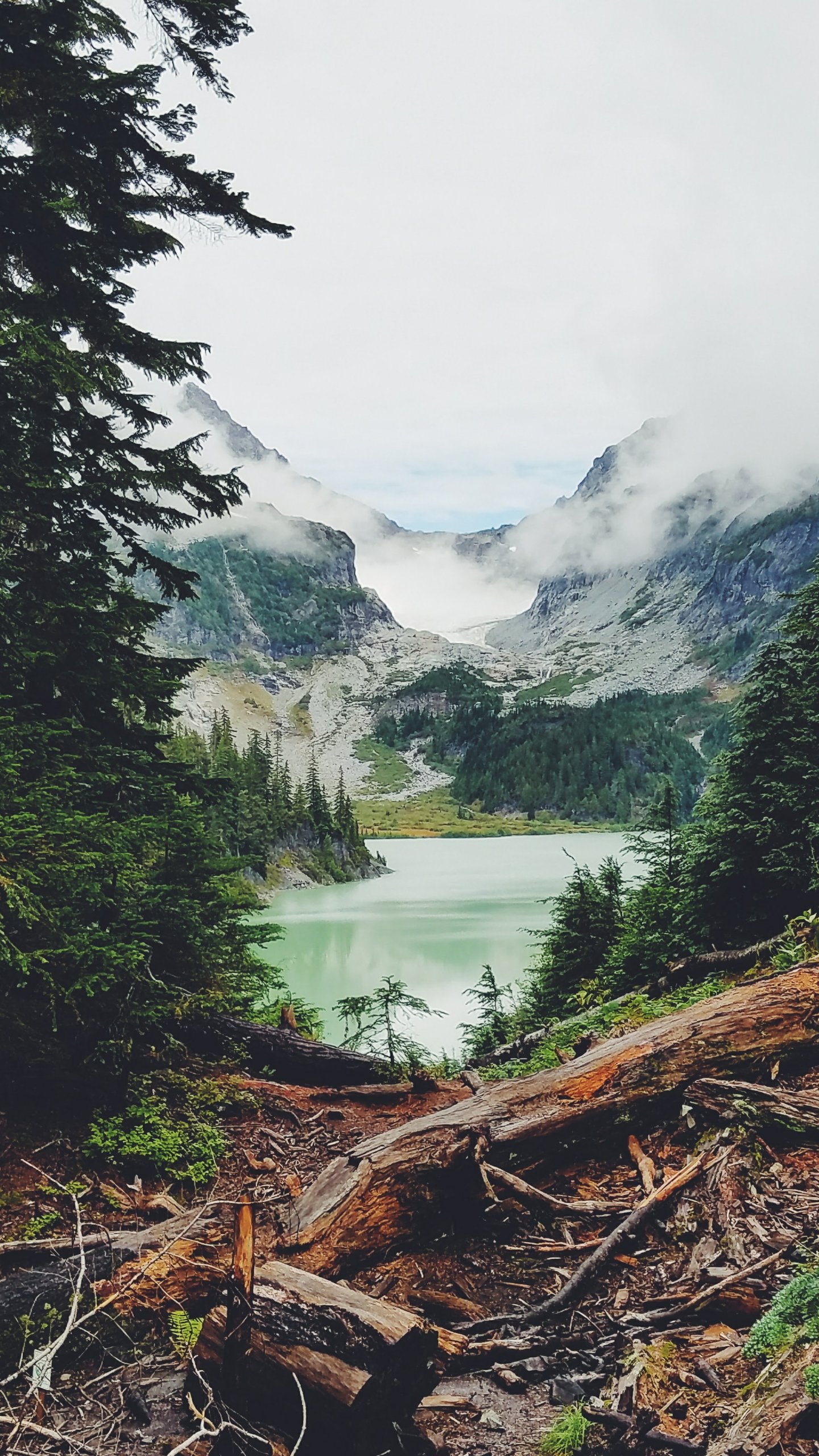 Wallpaper: mountains, forest, lake, clouds - 1440x2560