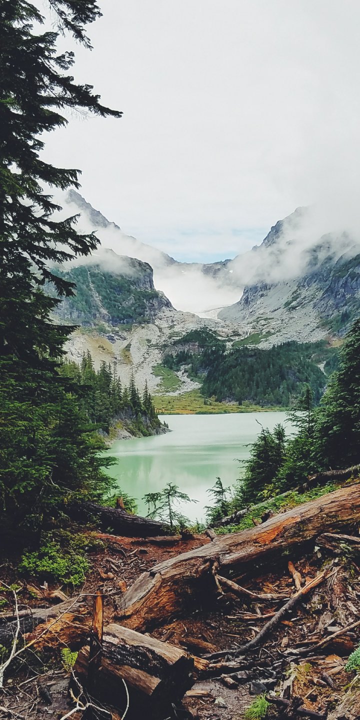 Wallpaper: mountains, forest, lake, clouds - 720x1440
