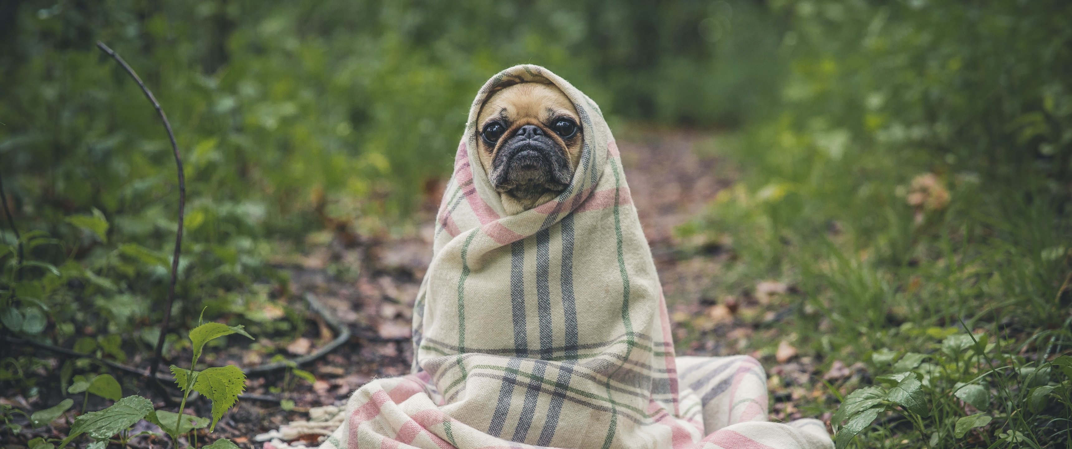 Wallpaper: pug, look, sadness - 3440x1440