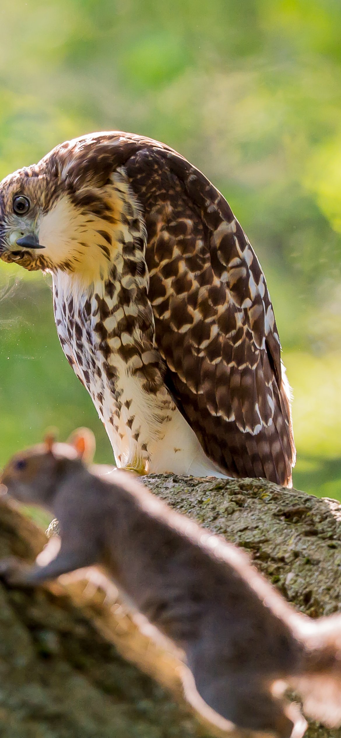Wallpaper: bird, squirrel, look - 1170x2532
