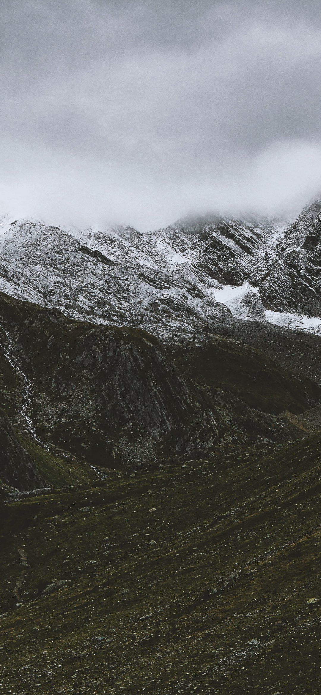 Wallpaper: mountains, clouds, snow - 1080x2340