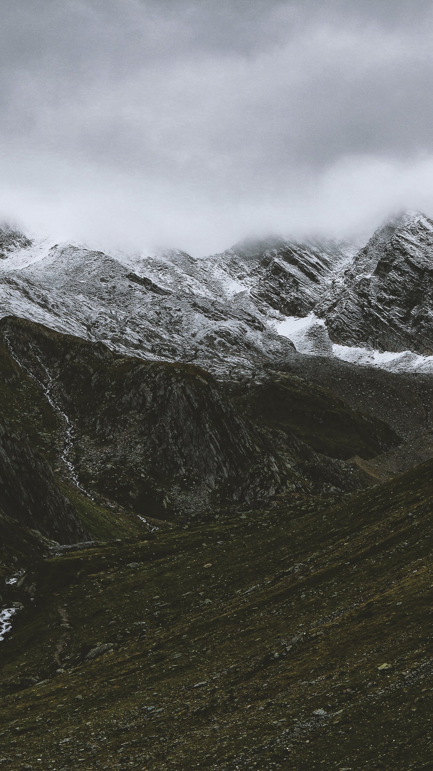 Wallpaper: mountains, clouds, snow - 1440x2560