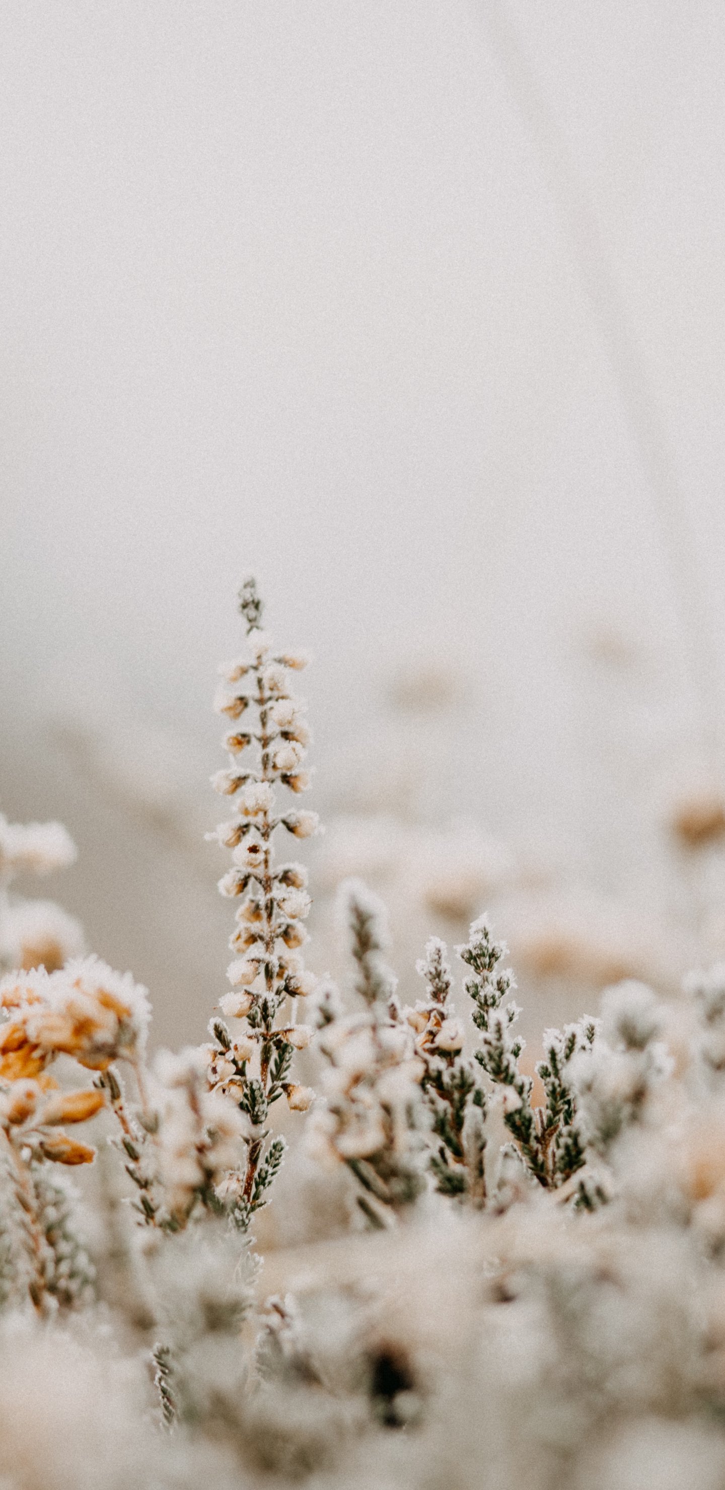 Wallpaper: flower field, frost - 1440x2960