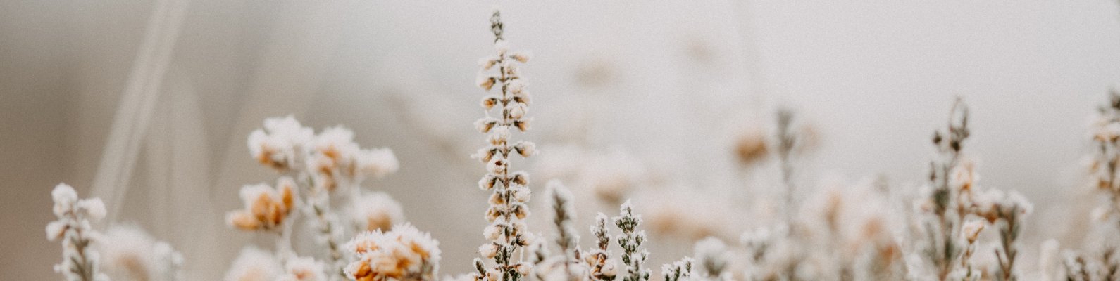Wallpaper: flower field, frost - 1590x400