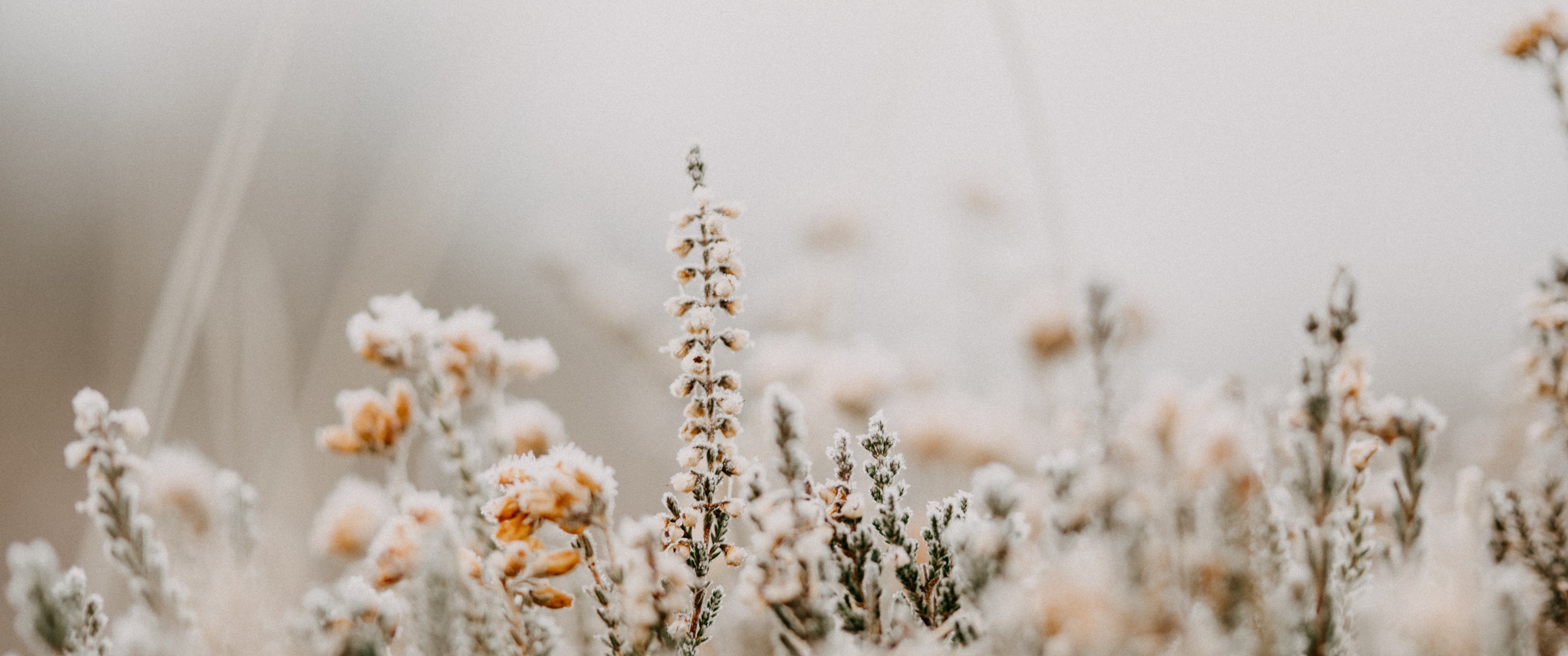 Wallpaper: flower field, frost - 3440x1440