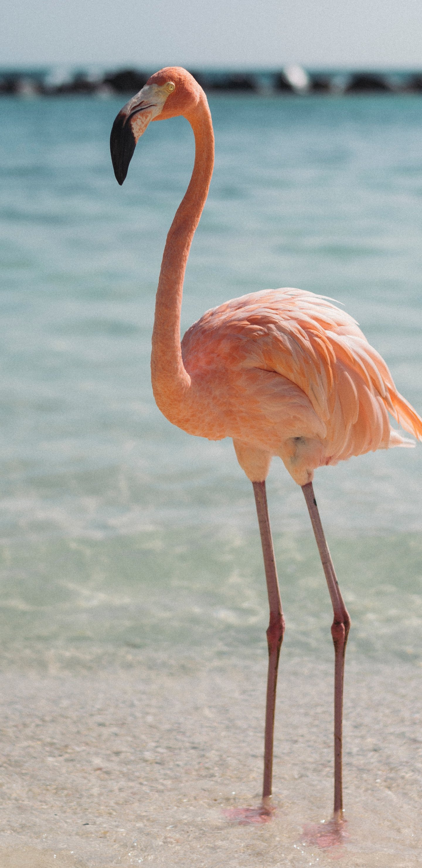 Wallpaper: flamingo, bird, shallow water - 1440x2960