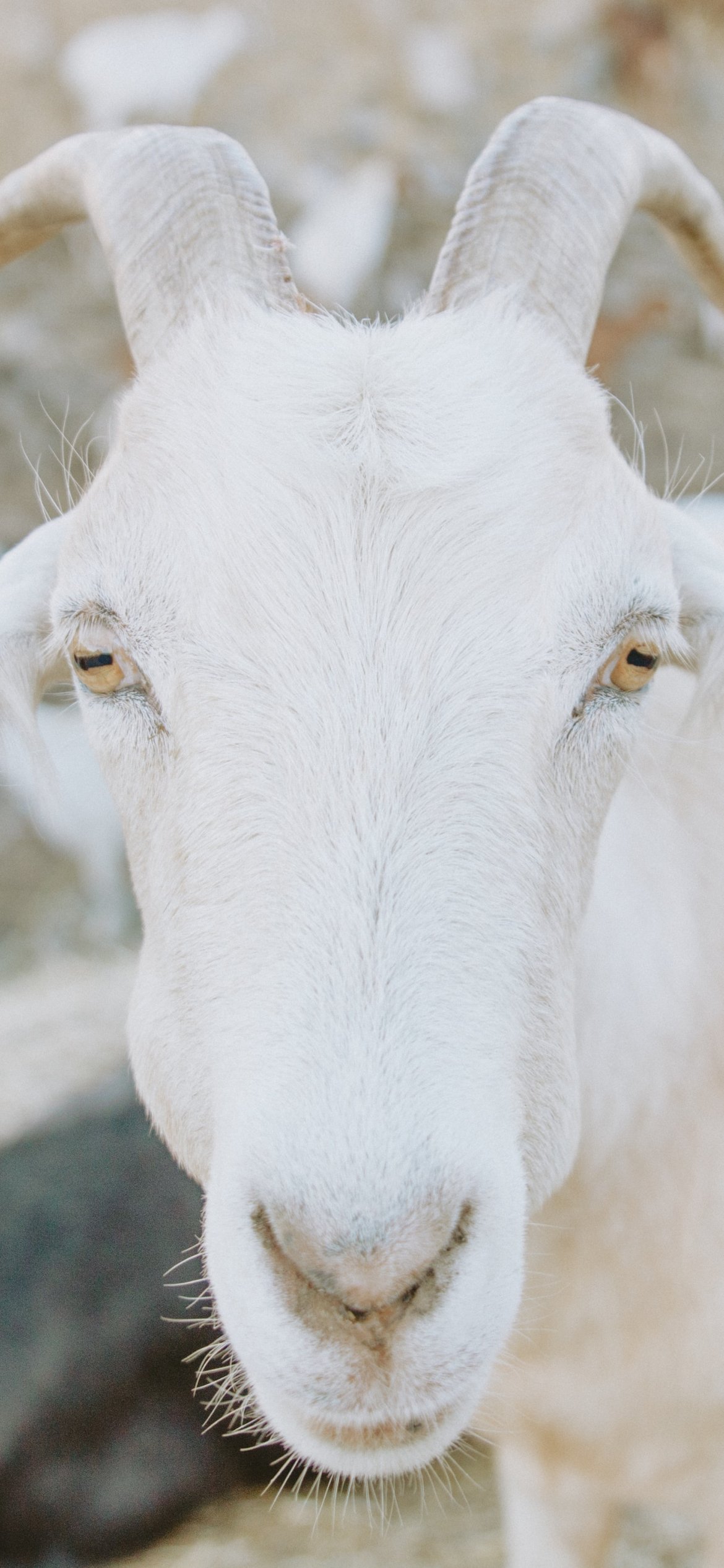 Wallpaper: goat, horn, yellow eyes - 1170x2532