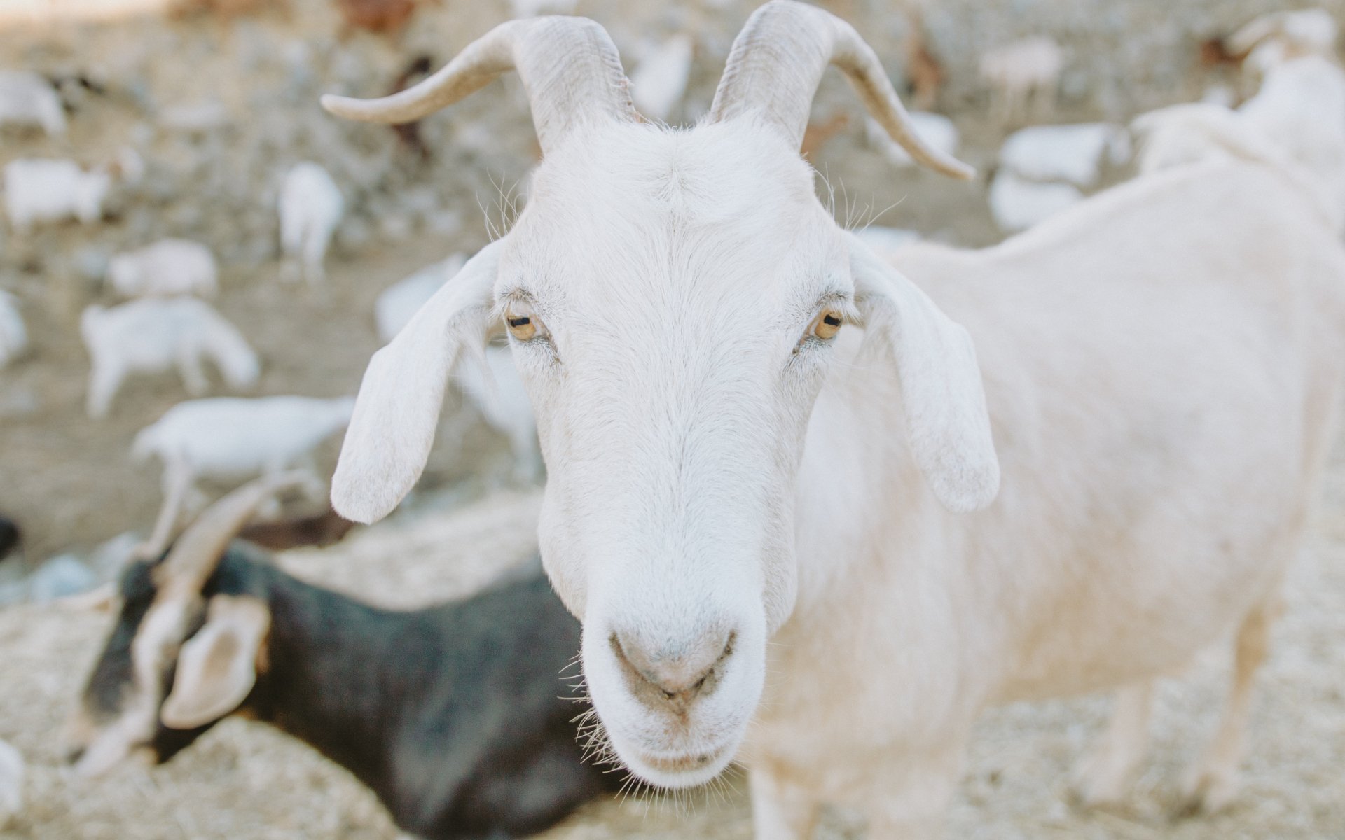 Wallpaper: goat, horn, yellow eyes - 1920x1200